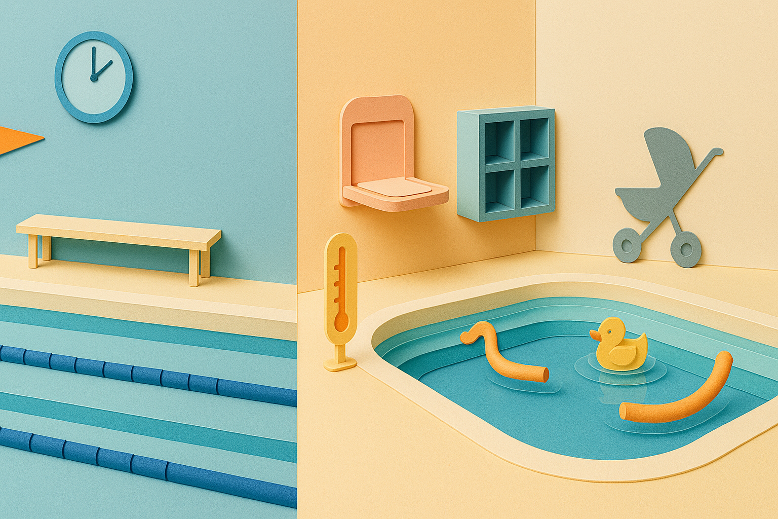 - Wärme: Babys unter 12 Monaten profitieren von 32–34 °C Wassertemperatur. Schwimmschulen haben das öfter, Vereine nutzen oft kommunale Bäder mit 28–30 °C. Kurzere Einheiten oder Neoprenanzug können das ausgleichen.