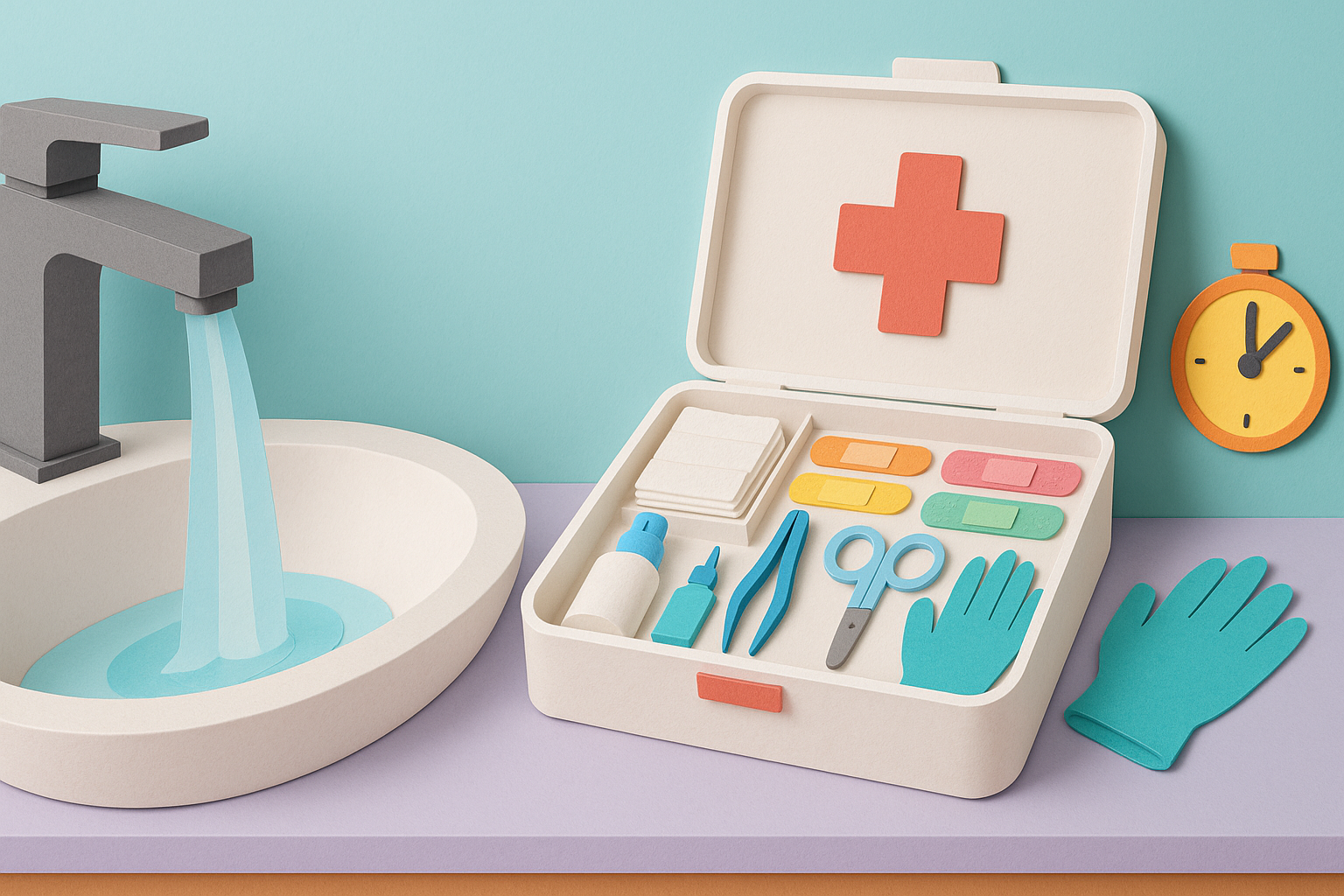 Die 60‑Sekunden‑Erstversorgung: Reinigen, Stoppen, Schützen