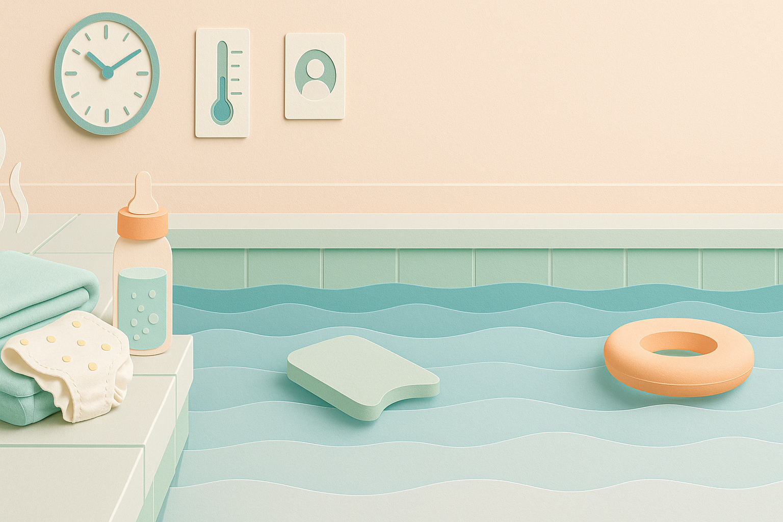 - Ausstattung: Schwimmwindel nicht zu eng, aber sicher. Ein zweites Handtuch für schnelles Warmhalten spart Tränen (und Luftschlucken).