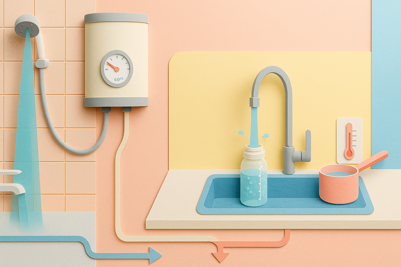 - Babybad: Warmwasser am besten in der Küche temperieren (bessere Durchfluss‑Hygiene), erst kurz vor dem Bad in die Wanne geben. Duschschlauch/‑kopf sauber halten.
