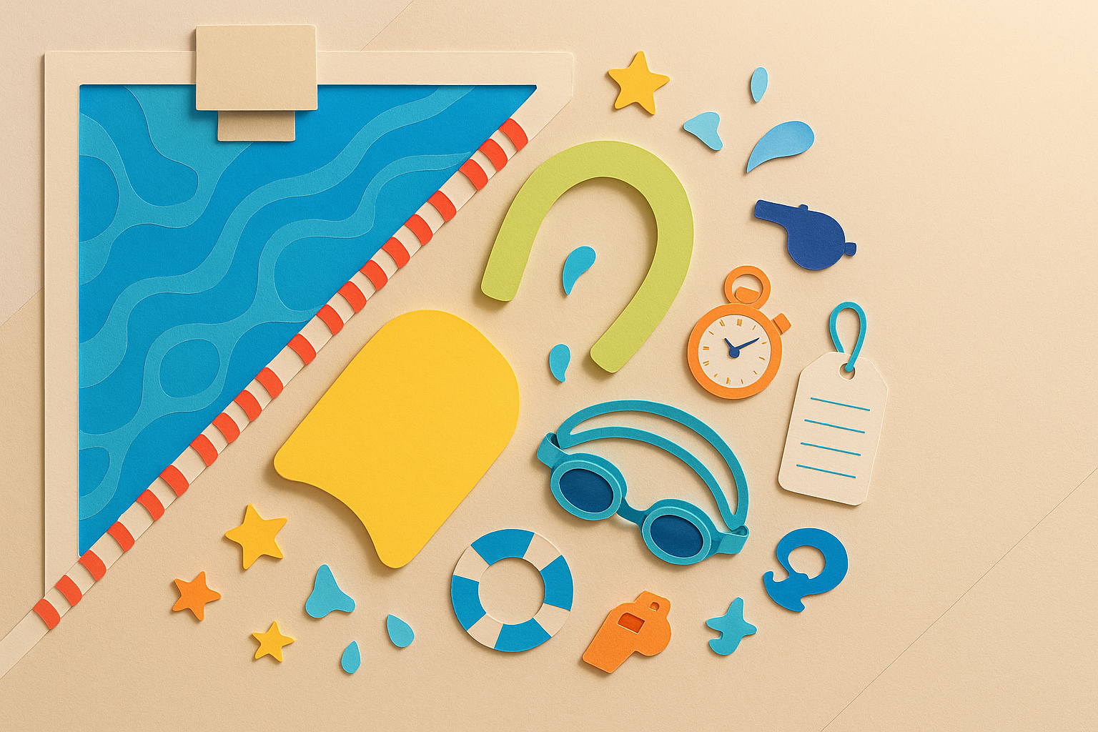 Ausrüstung: Ein kleines Brett oder eine Poolnudel reichen. Schwimmbrille (passt und drückt nicht), evtl. kurze Flossen als „Gefühlsbooster“. Kein Technik-Gadget ersetzt spielerisches Üben. Pro-Tipp: Ein Sticker- oder Stempelpass motiviert enorm – jede Übung = ein Sticker.